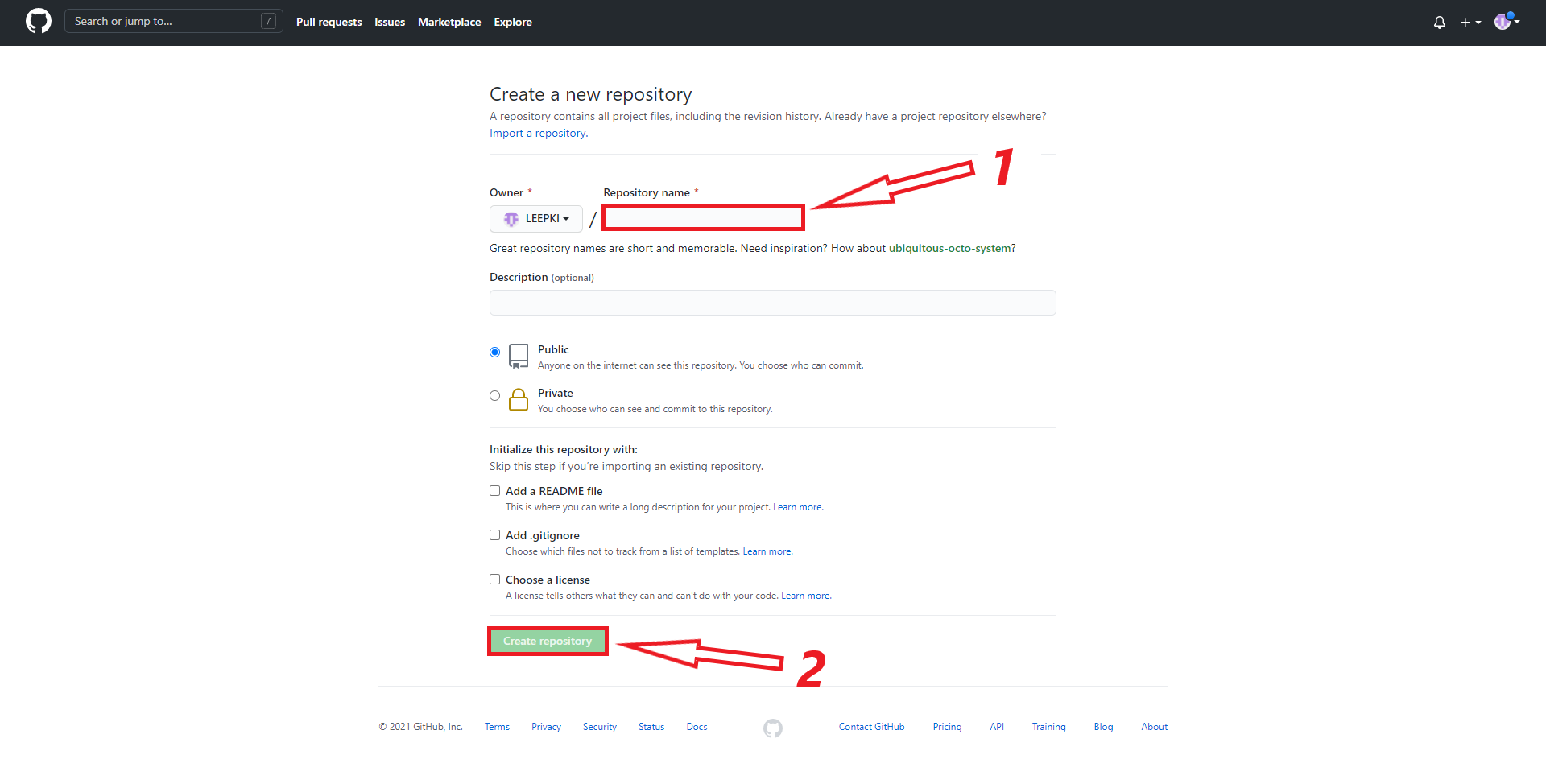 Repository Name 입력란에 사용할 저장소 이름을 입력합니다.