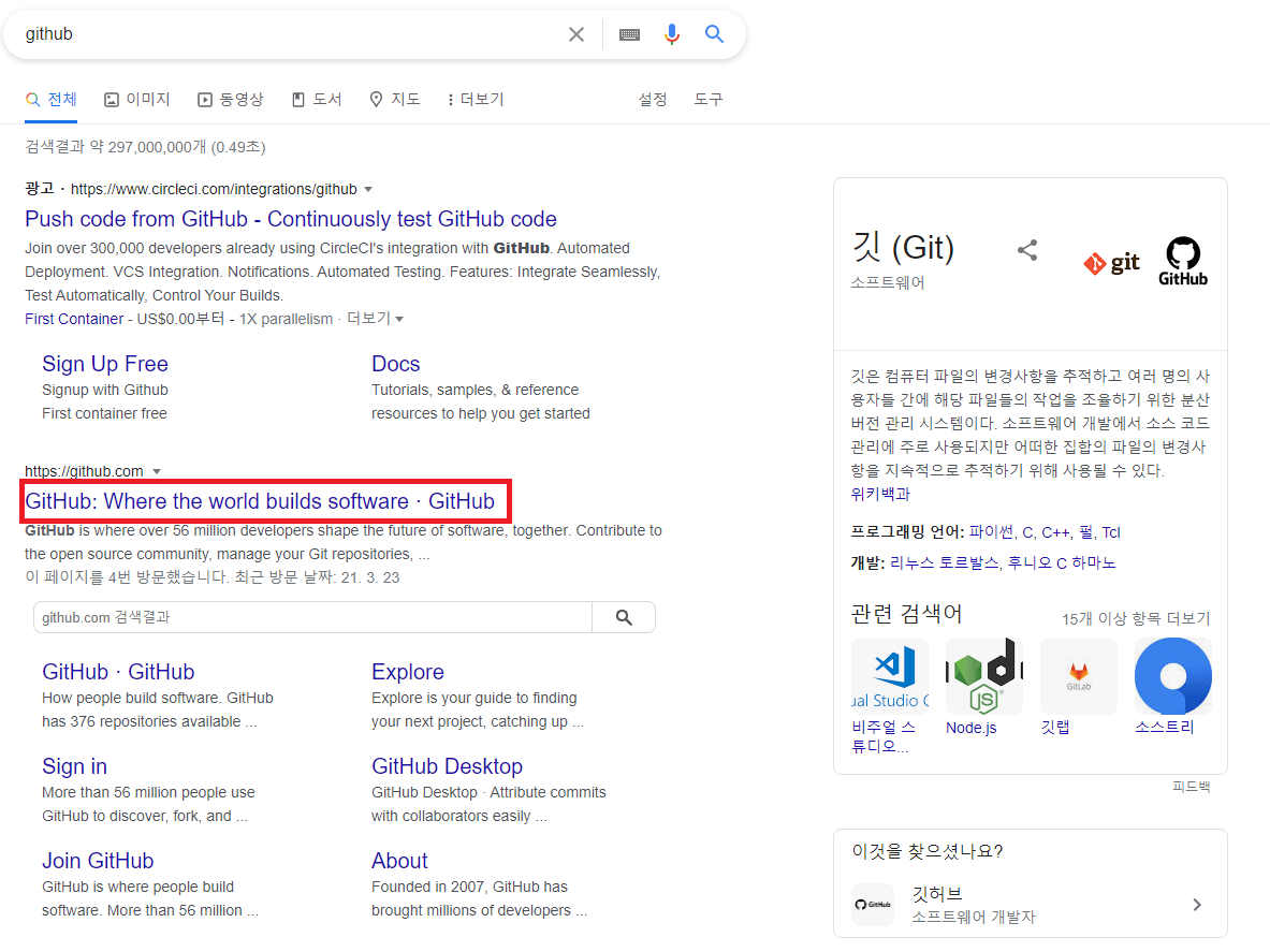 Google에 GitHub를 검색 !