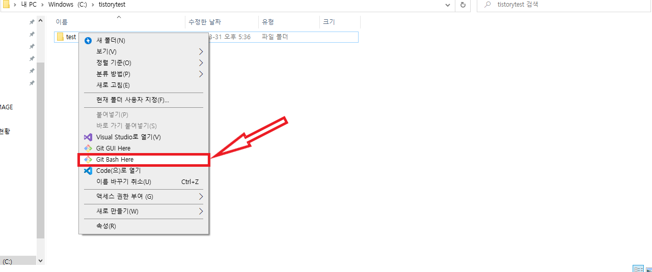 업로드할 파일을 우클릭 후 Git Bash 실행
