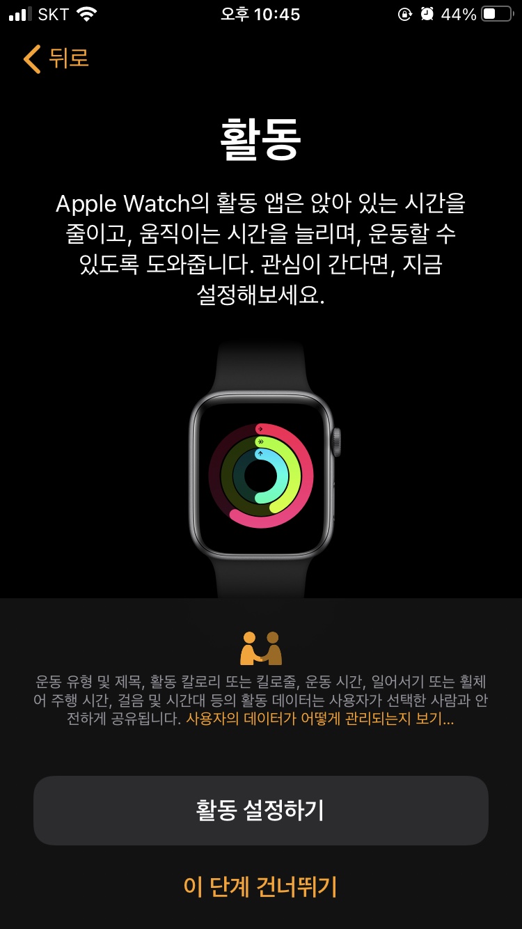 애플워치 역시 초기 설정이 까다롭지 않습니다.