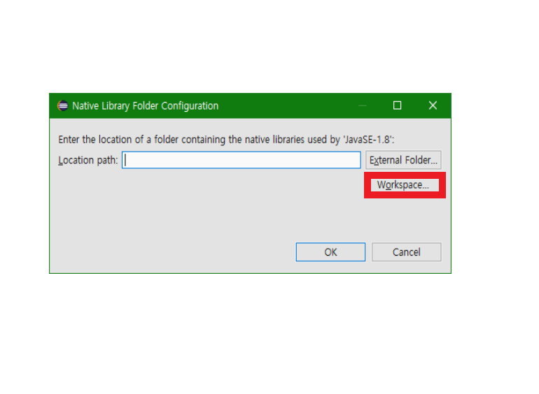마찬가지로, Java Build Path > Native library location이 현재는 None인 상태입니다.
