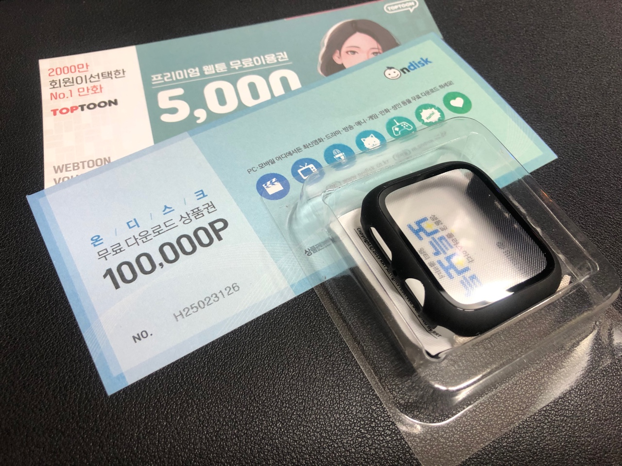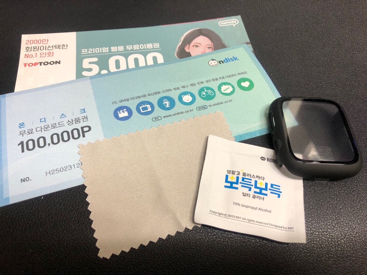 킹콩 젤리케이스는 말 그대로 케이스가 하나 왔었는데 로랜텍은 탑툰, 온디스크 쿠폰을 제공하네요.