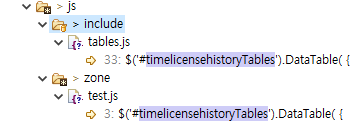 에러가 발생한 DataTables의 id를 복사하여 본인 프로젝트에서 검색을 해보았습니다.
