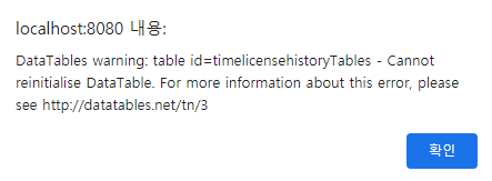 ID가 timelicensehistoryTables 라는 datatables를 재정의할 수 없다. 라고 해석할 수 있겠네요