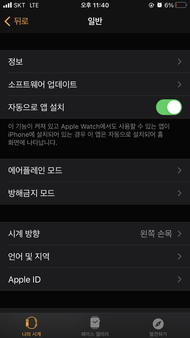 아이폰 > Watch 앱 > 일반 > 자동으로 앱 설치 On