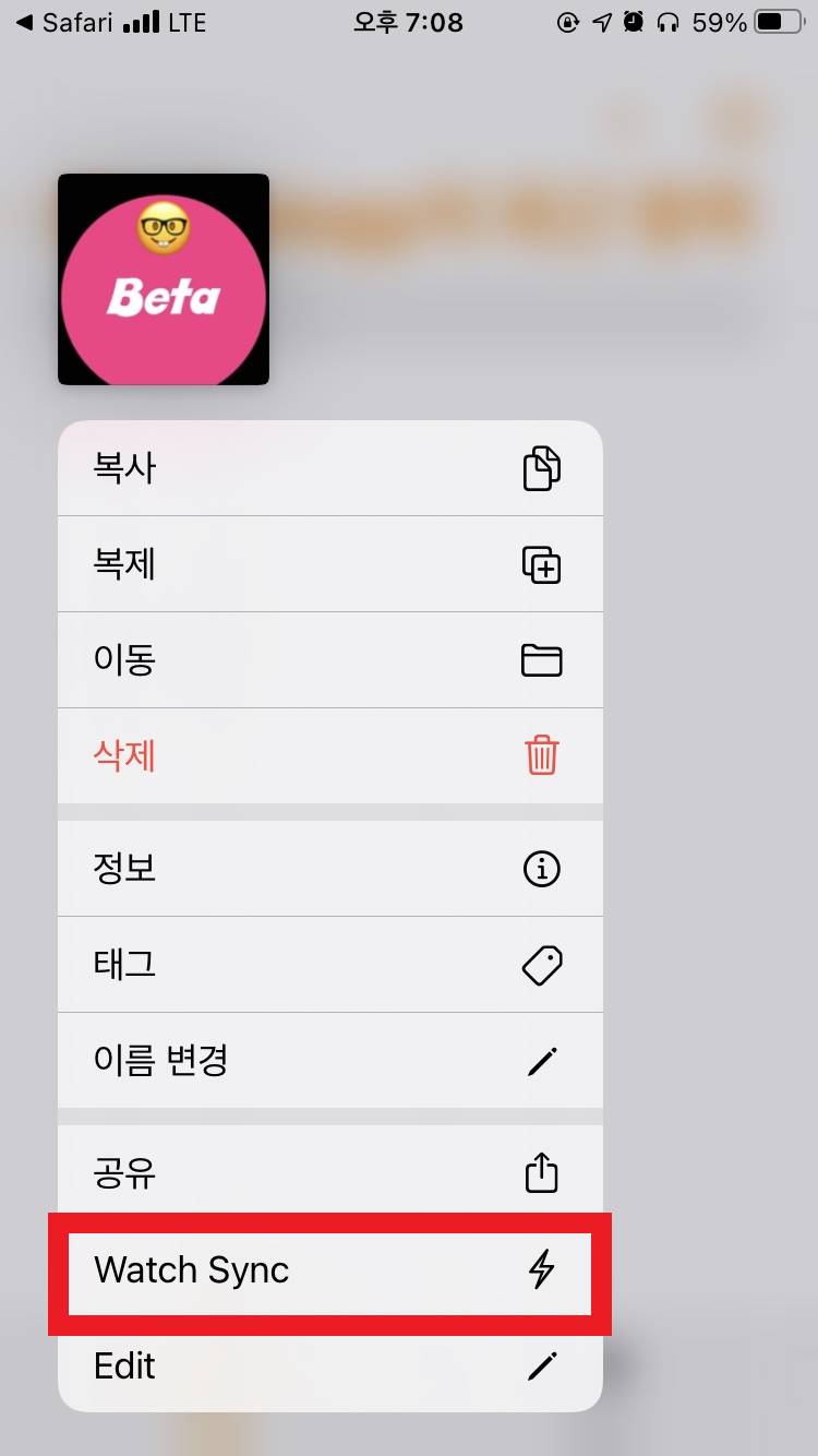 최근 항목에 떠있는 _EnableBeta.clock 길게 클릭 > Watch Sync 를 클릭해주세요