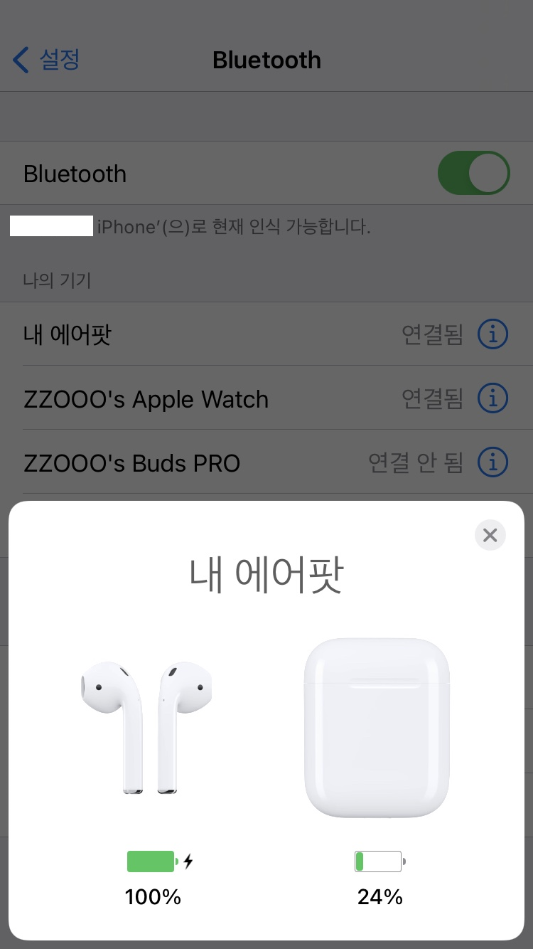 ✔ 본인의 휴대폰과 에어팟을 연결해주세요.
