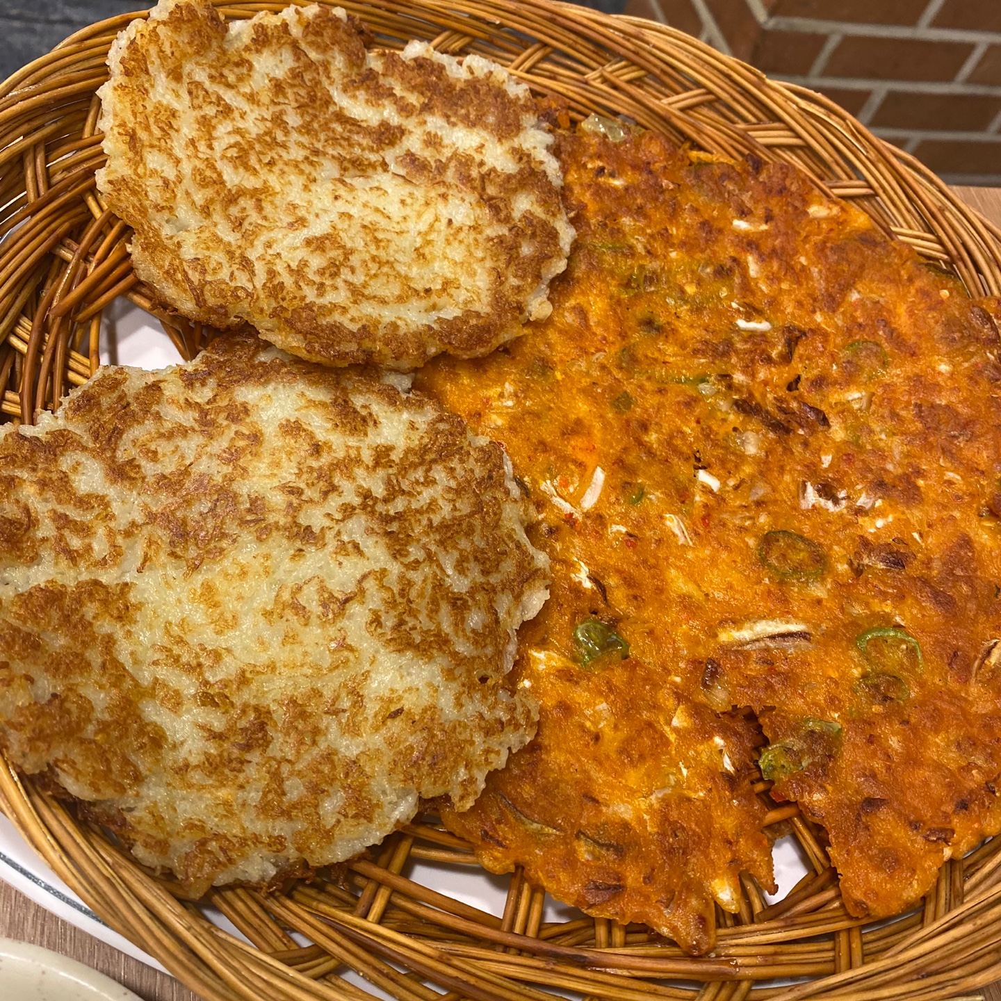 2차 모둠전이 나오기 전에 김치전 1장과 감자전 2장이 나왔습니다.