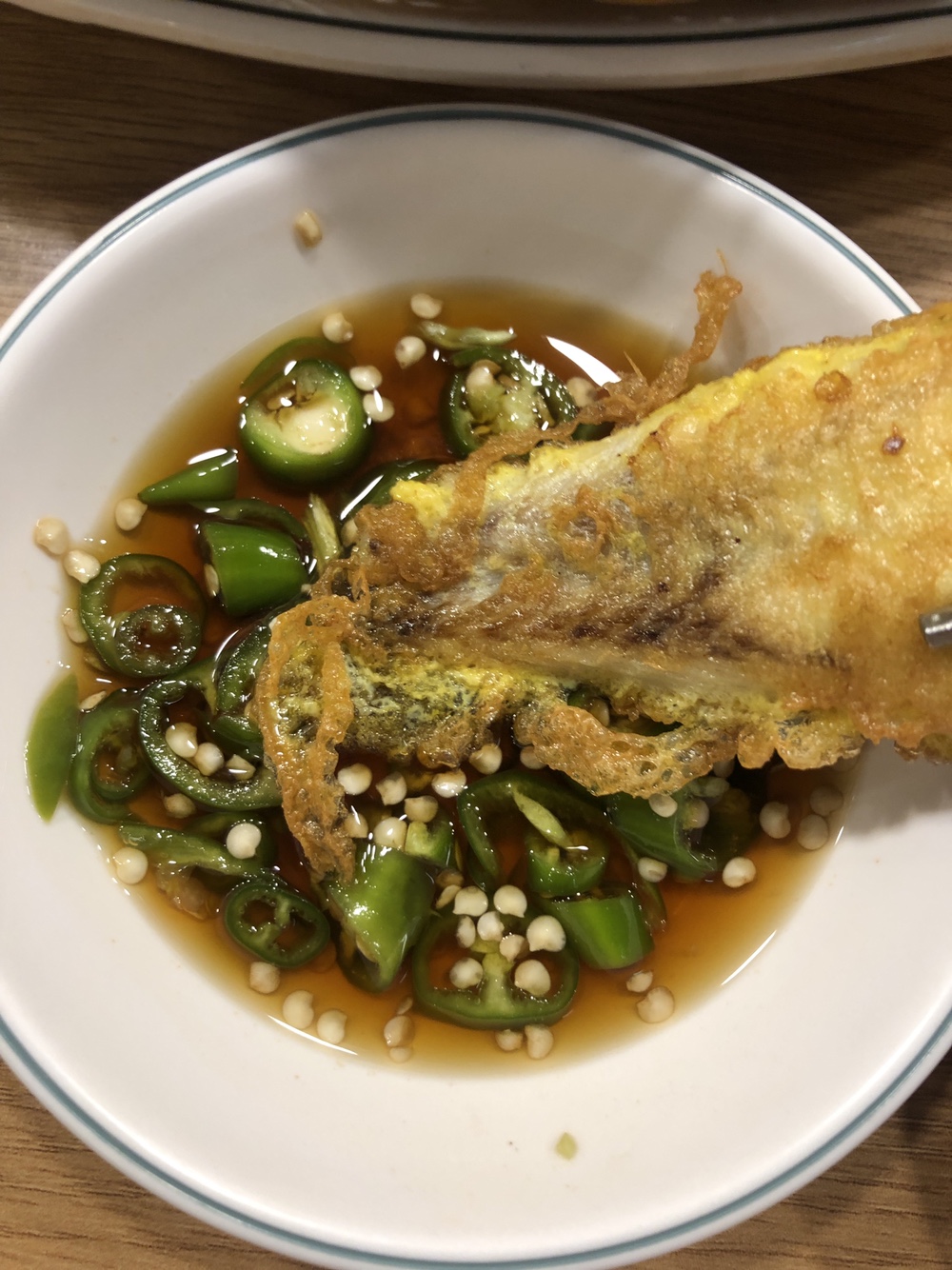 감자전에 청양고추 2개를 올려서 한입에 넣으니까 정말 글로 표현할 수 없는 맛입니다.