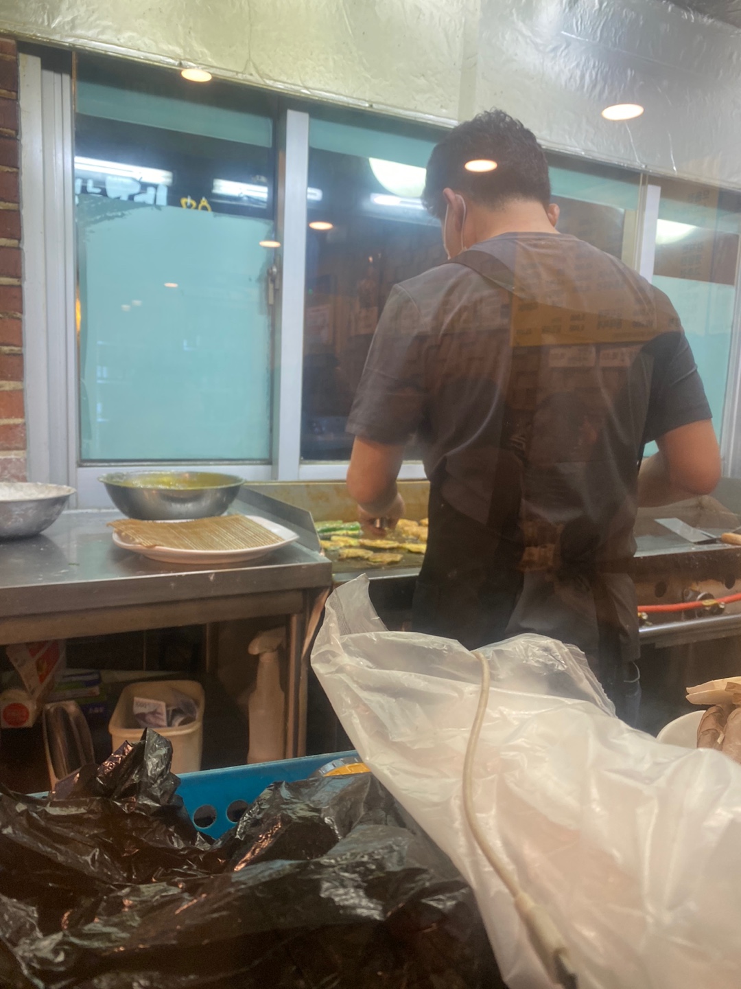 주방에서 반죽을 해서 아주머니가 가져다주시면 사장님이 전을 부쳐서 바로 가져다주십니다.