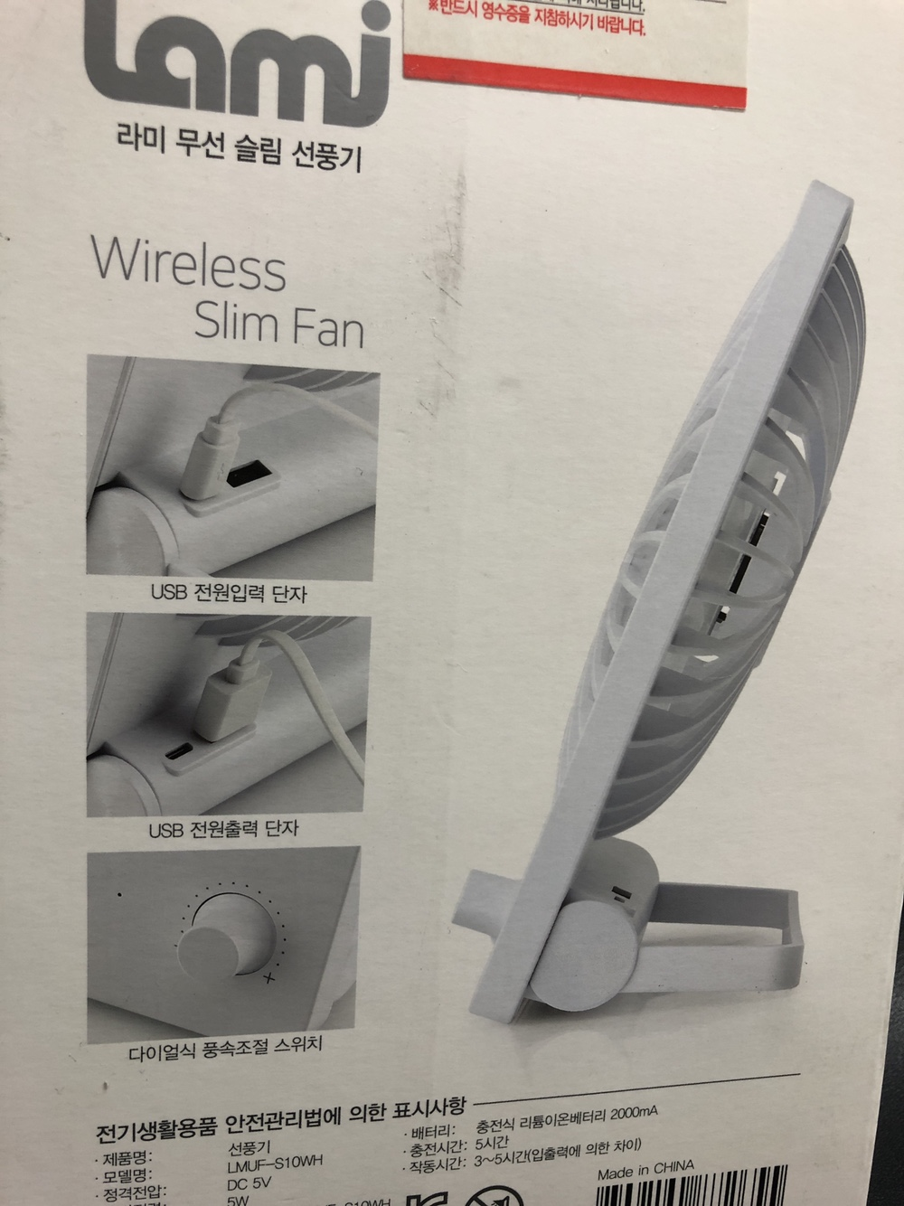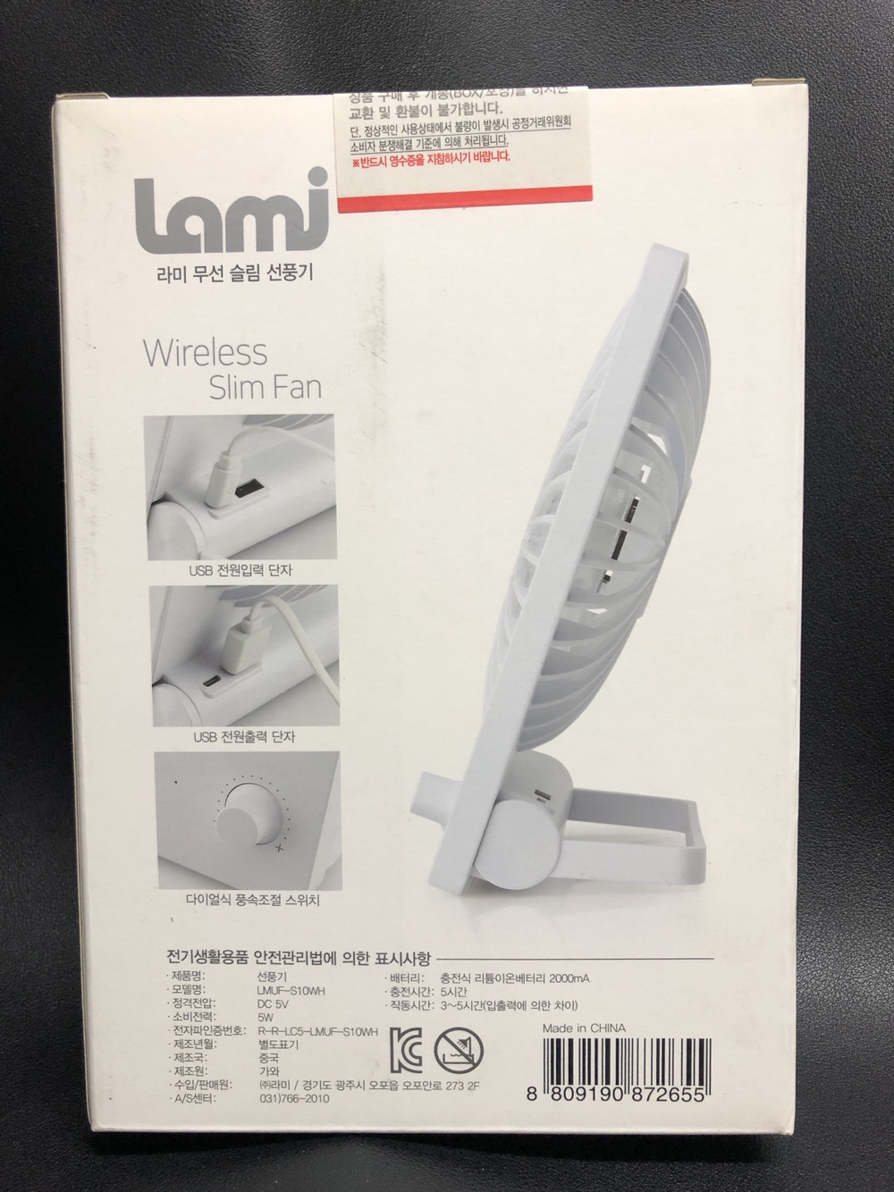 제품 명 : 라미 무선 슬림 선풍기 ( LMUF-S10WH )