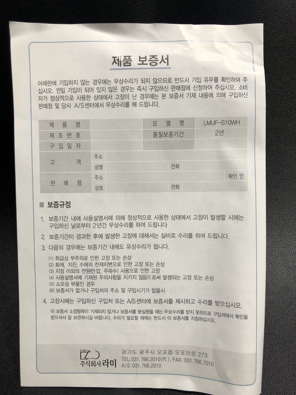대부분 이런 제품에는 설명서에 A/S 정보나 보증서 넣어놓는걸 자주 보지 못했는데,