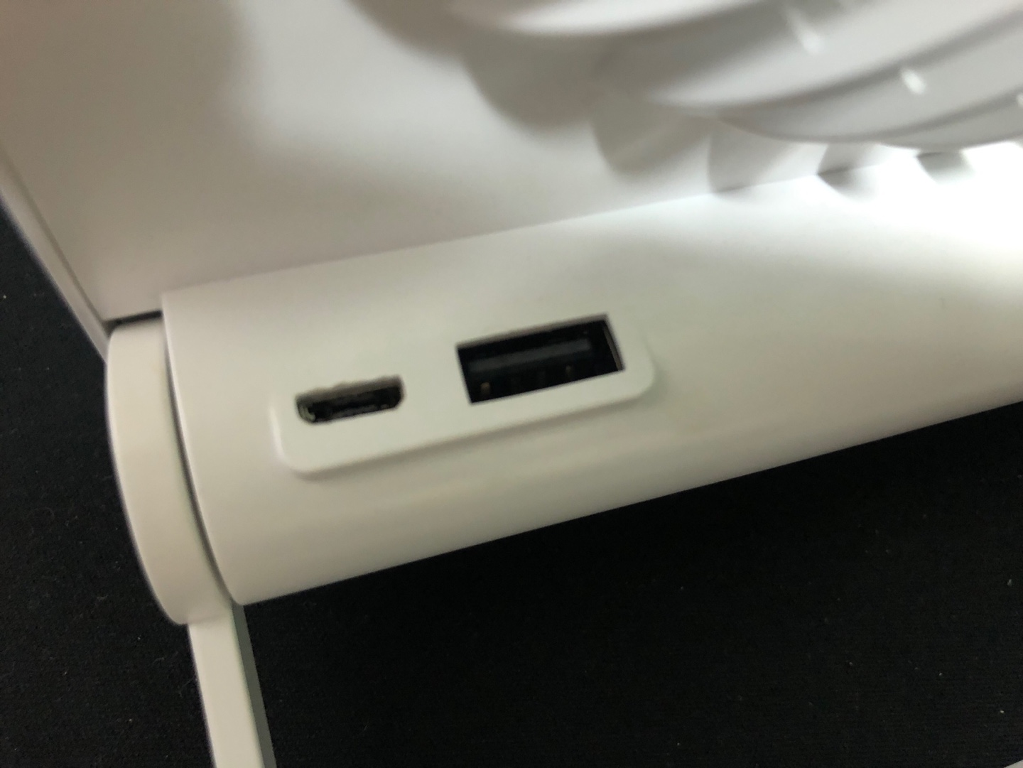 선풍기 본체 뒷면에 5핀과 USB 타입 포트가 있습니다.