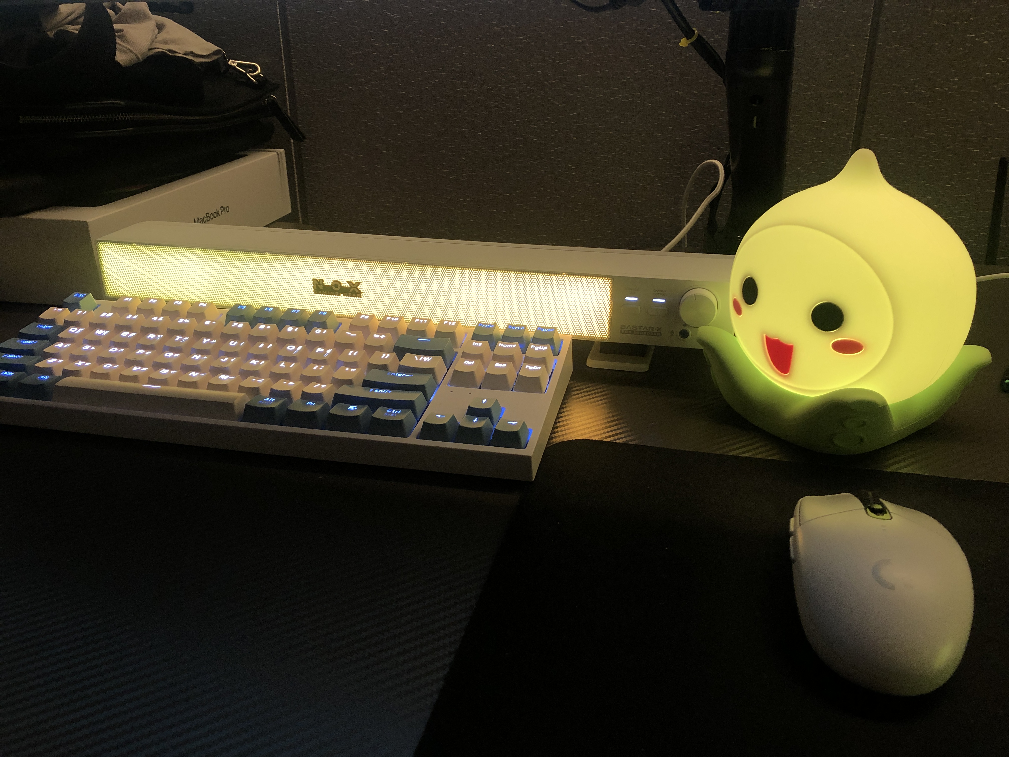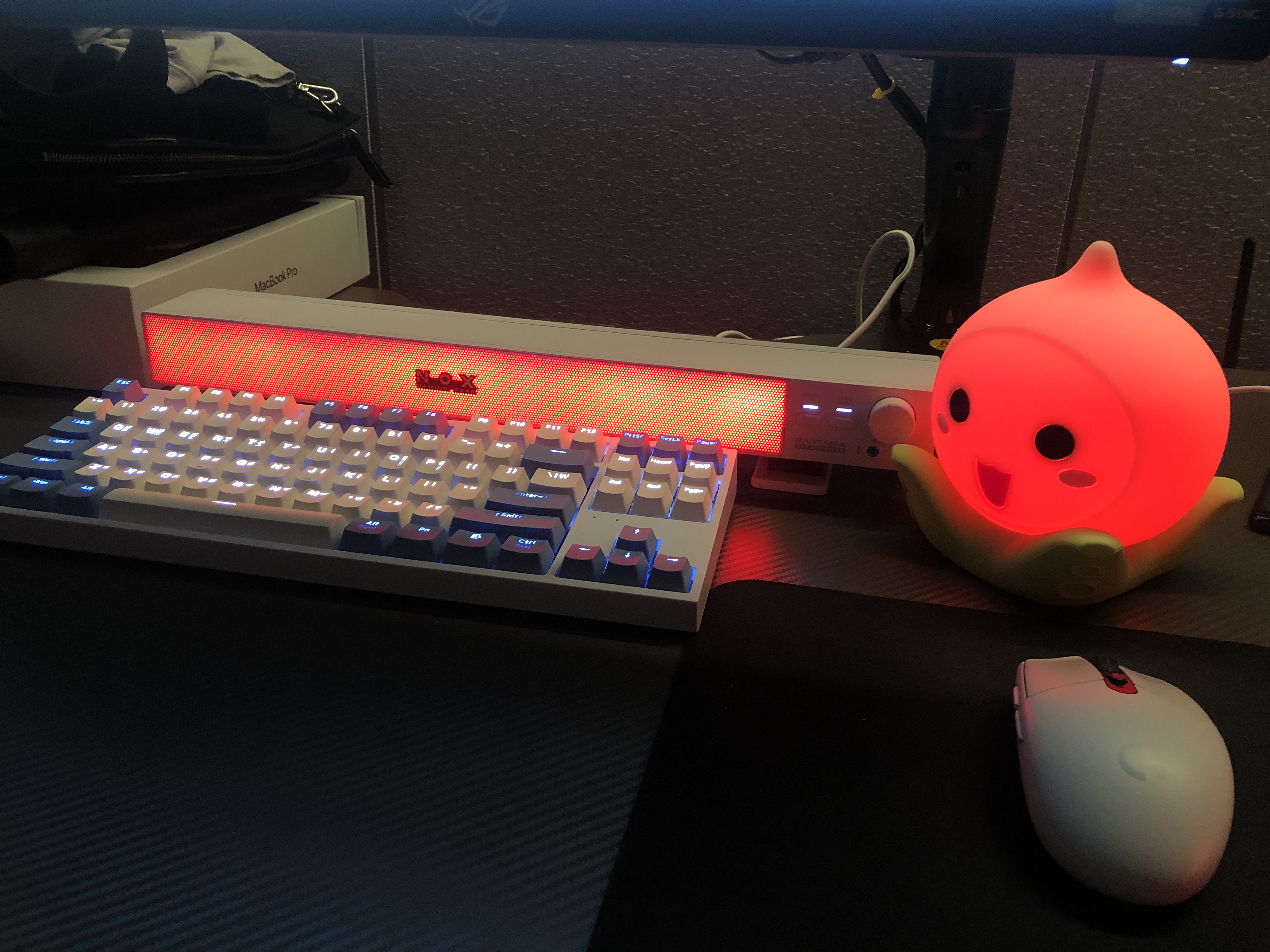 그래서 불을 끄고 있어도 무드등과 사운드바만 있으면 되게 느낌 있는 환경이 만들어집니다. 만족스럽습니다.