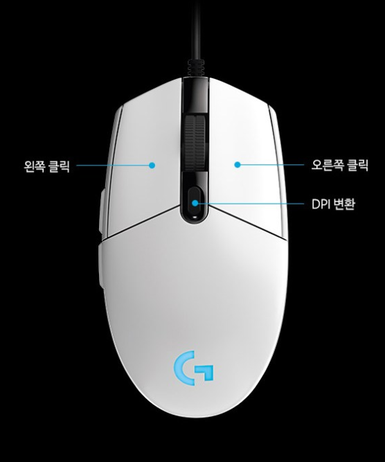네 G102 유선 마우스와 굉장히 흡사한 디자인을 보이고있습니다.