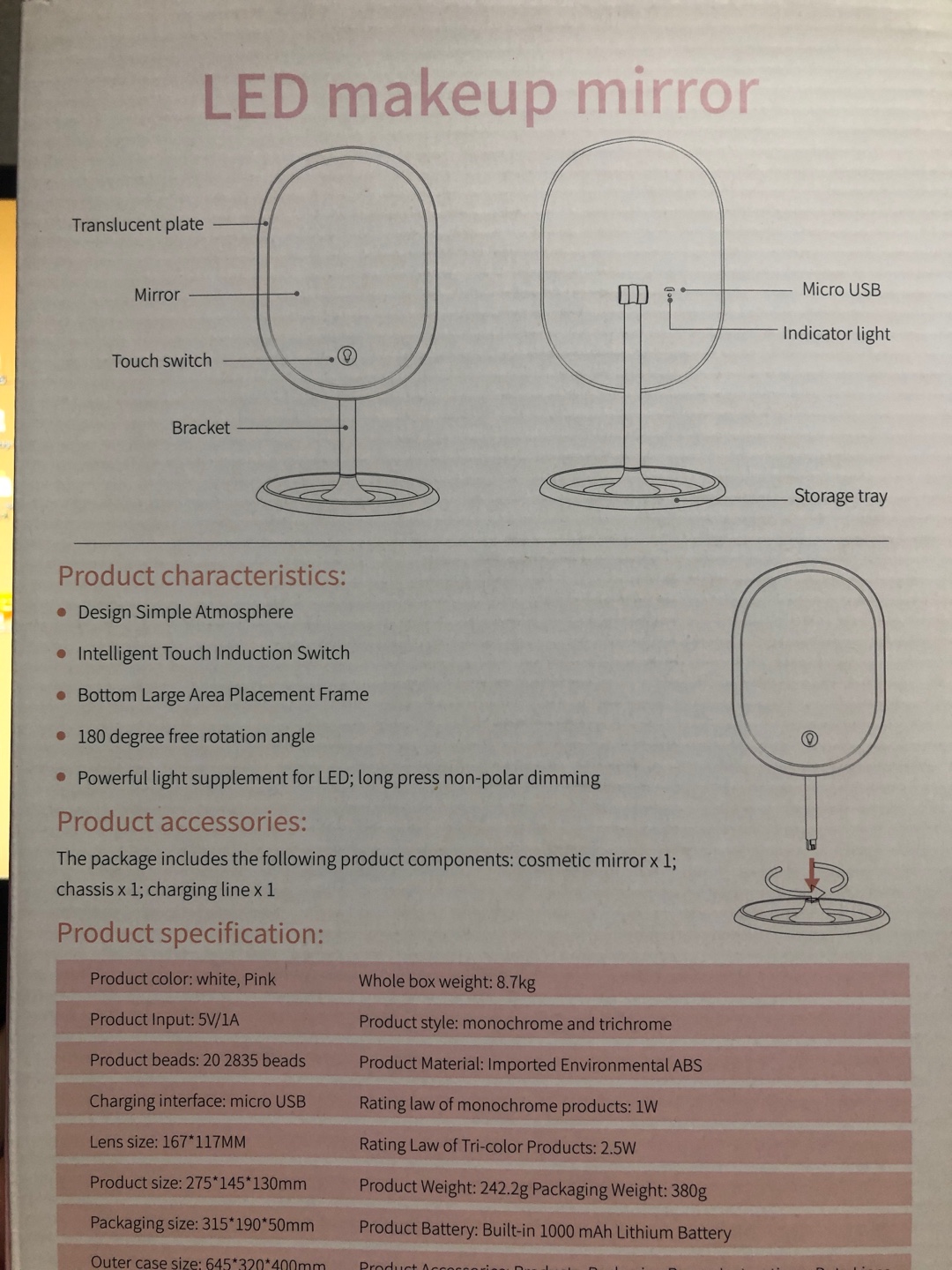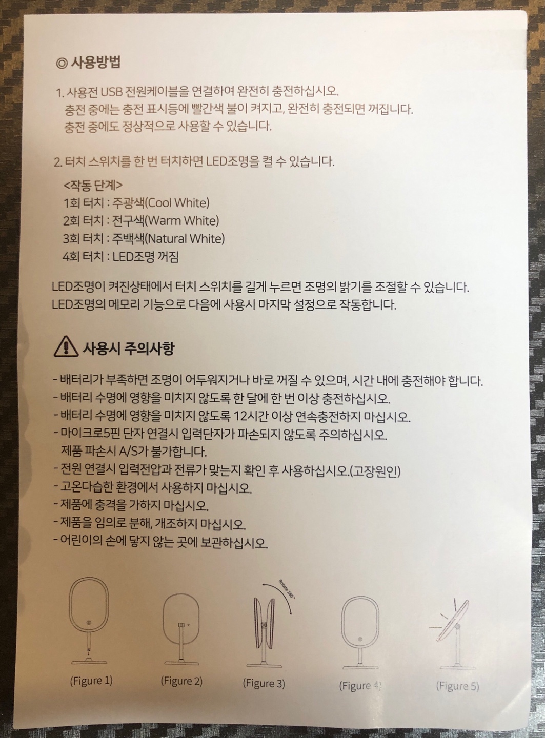 💨 5핀 케이블을 이용해서 사용할 수 있는 충전식 LED 거울이라 고장 나지만 않는다면 오래 쓸 수 있고,