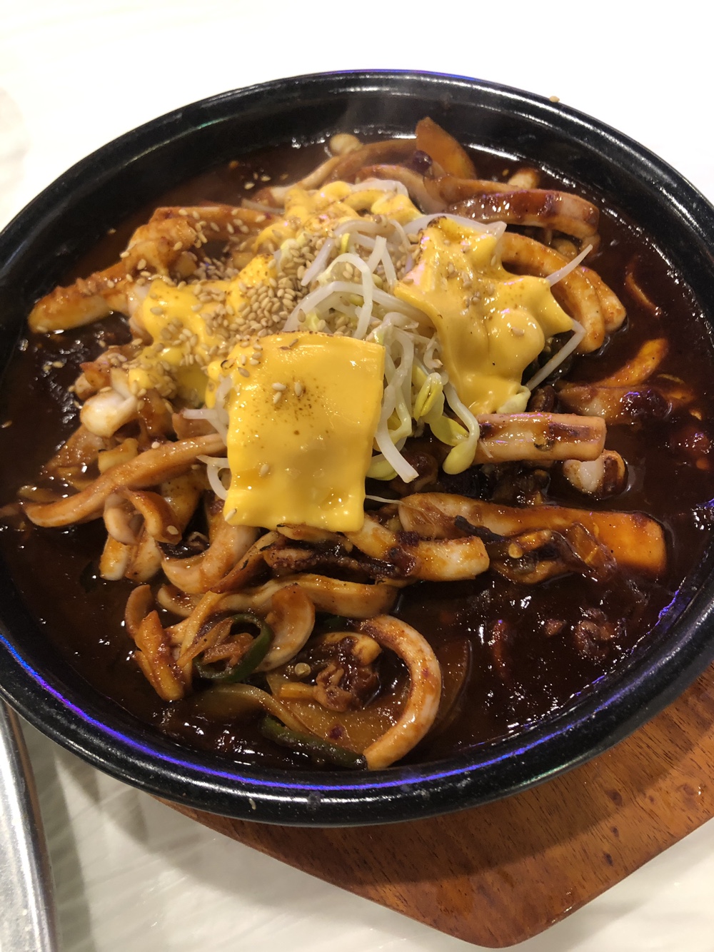 청양불오징어의 사진을 보시면 아시겠지만, 플레이팅에 조각 콩나물과 체다치즈 한 장이 들어가 있습니다.