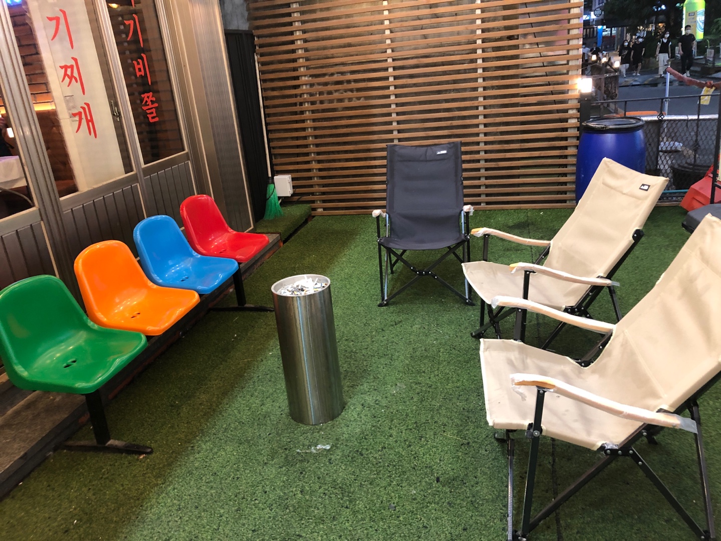 의자 또한 캠핑의자와 옛날 버스정류장이 생각나는 의자가 있네요.