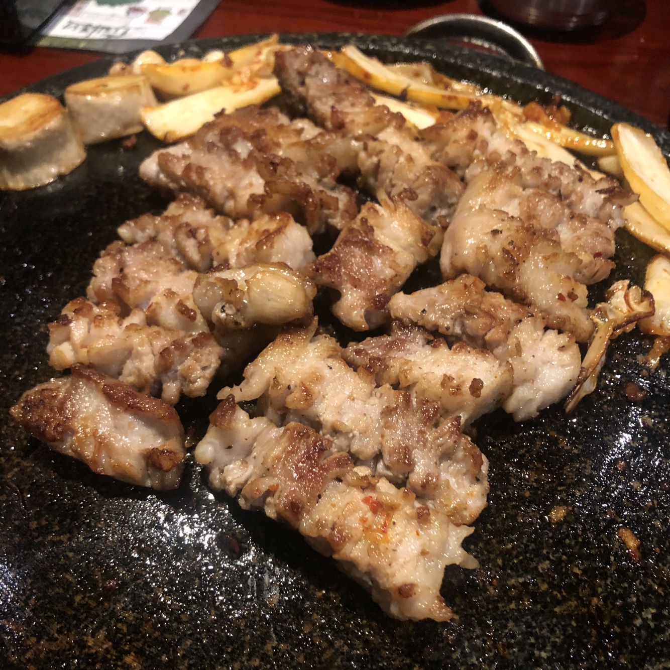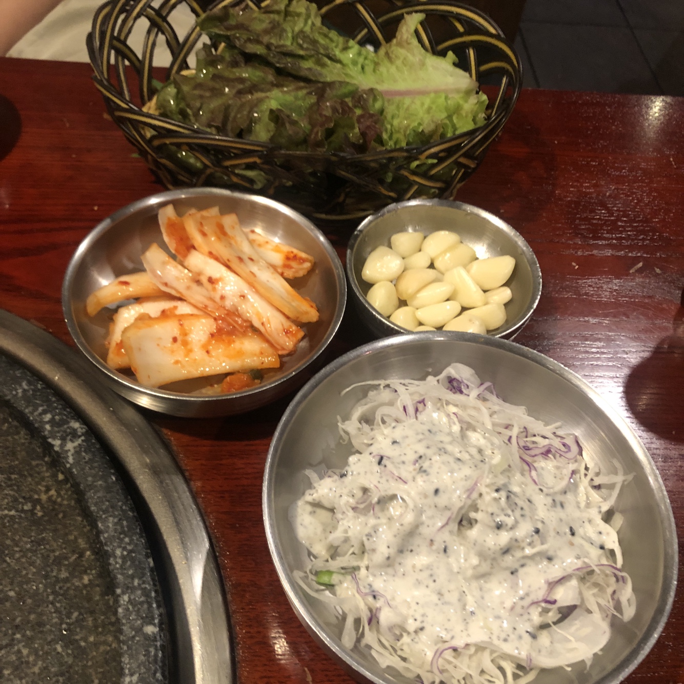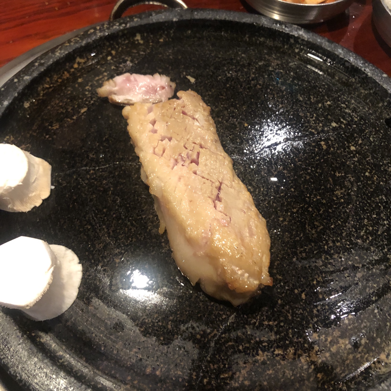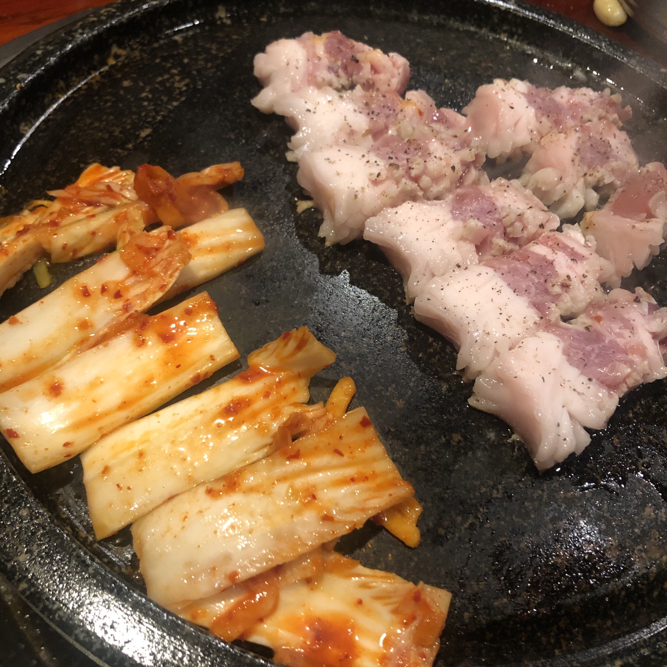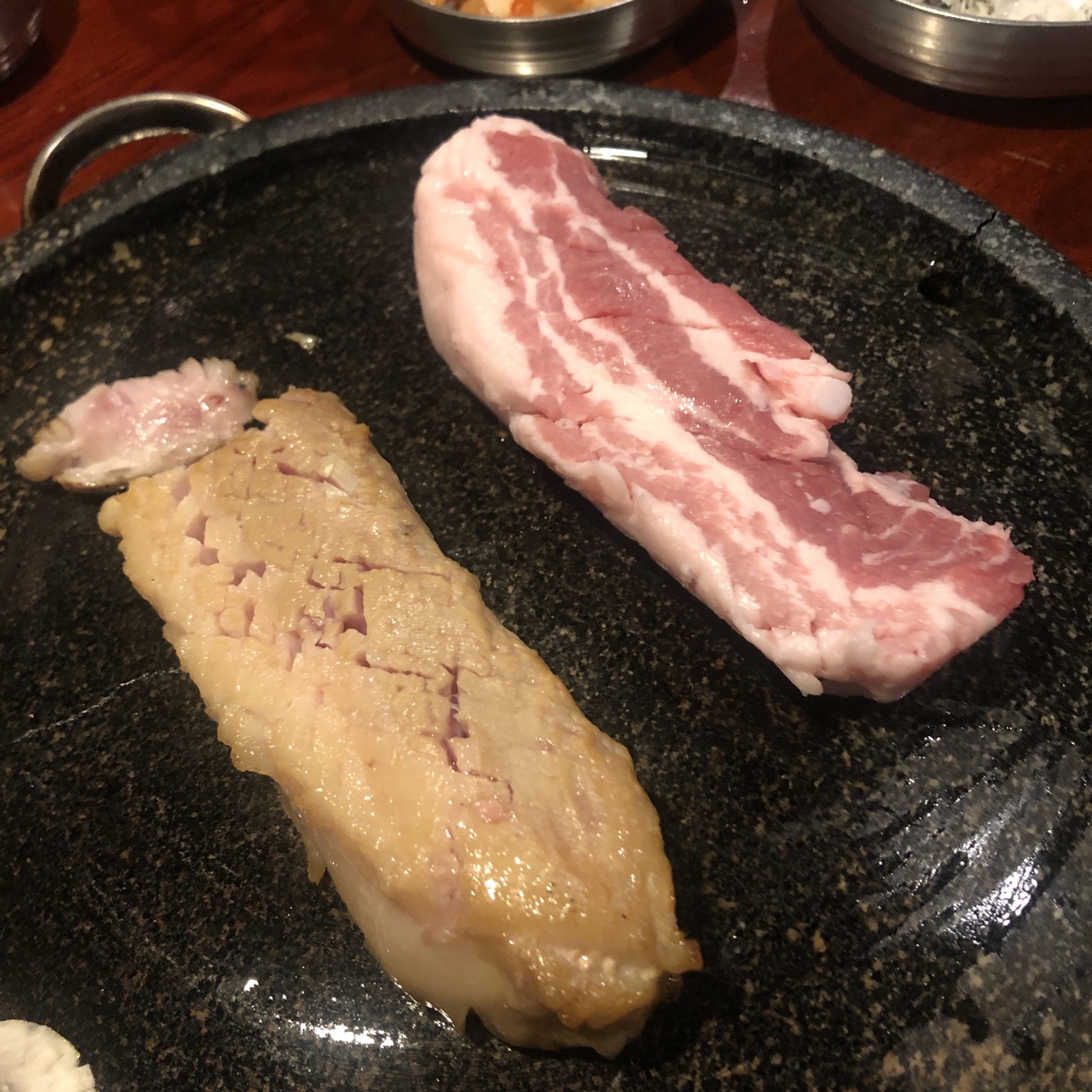 불판은 되게 예스러운 돌판을 내주셨습니다. 금이 가있는 것 같지만, 문제는 없겠죠?