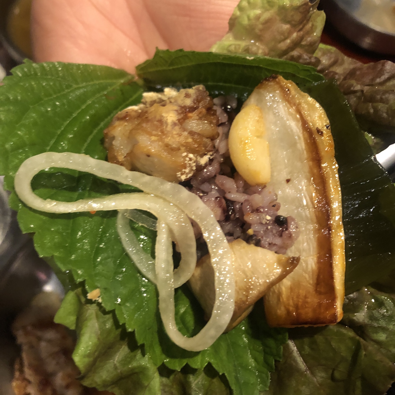 밑반찬이 쌈을 먹기 좋은 구성이라, 쌈도 많이 싸 먹었습니다. ( feat. galic heart .. ㅋㅋㅋㅋㅋㅋㅋㅋㅋㅋ )