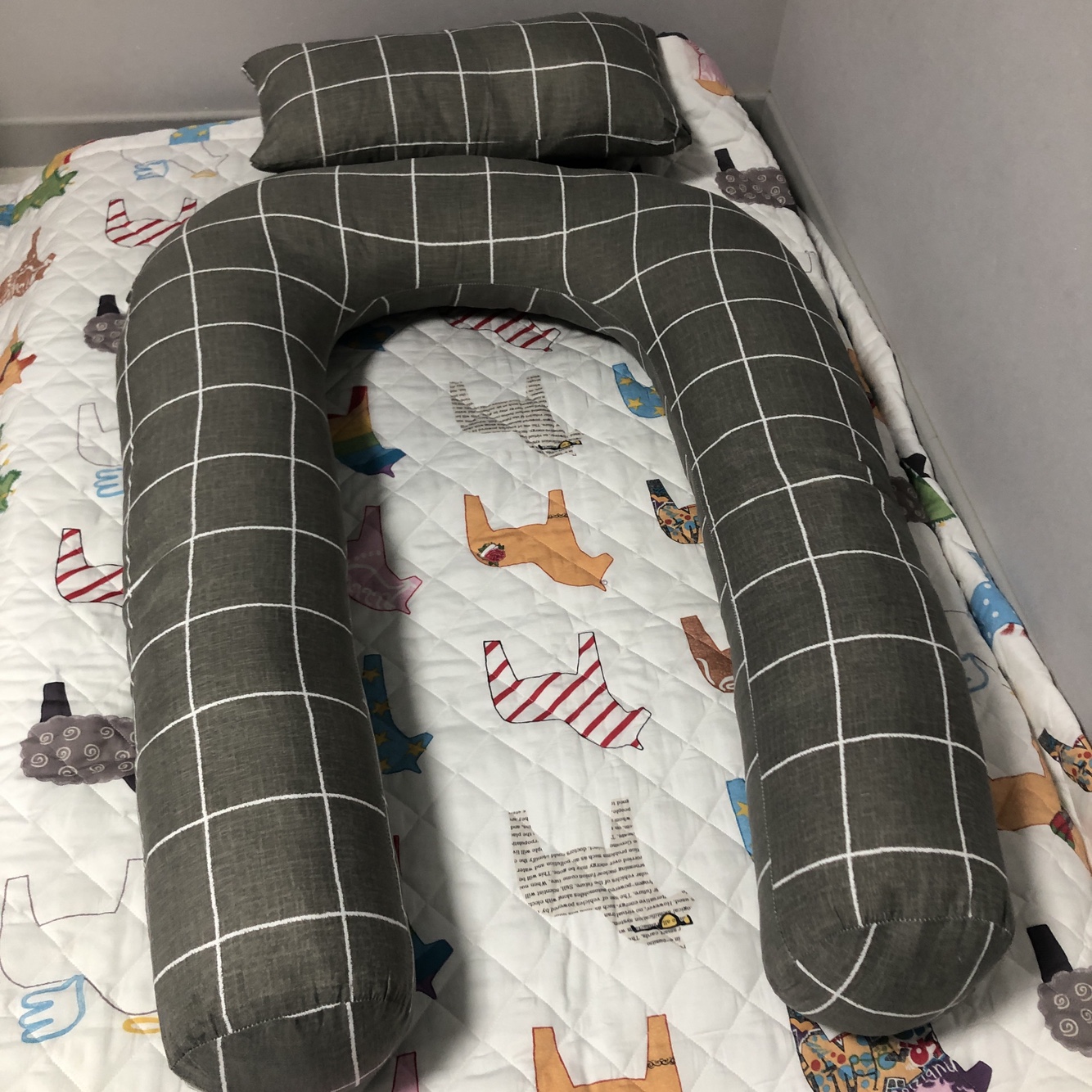 어반 U자형 바디필로우+레그필로우(체크그레이, 화이트그레이)