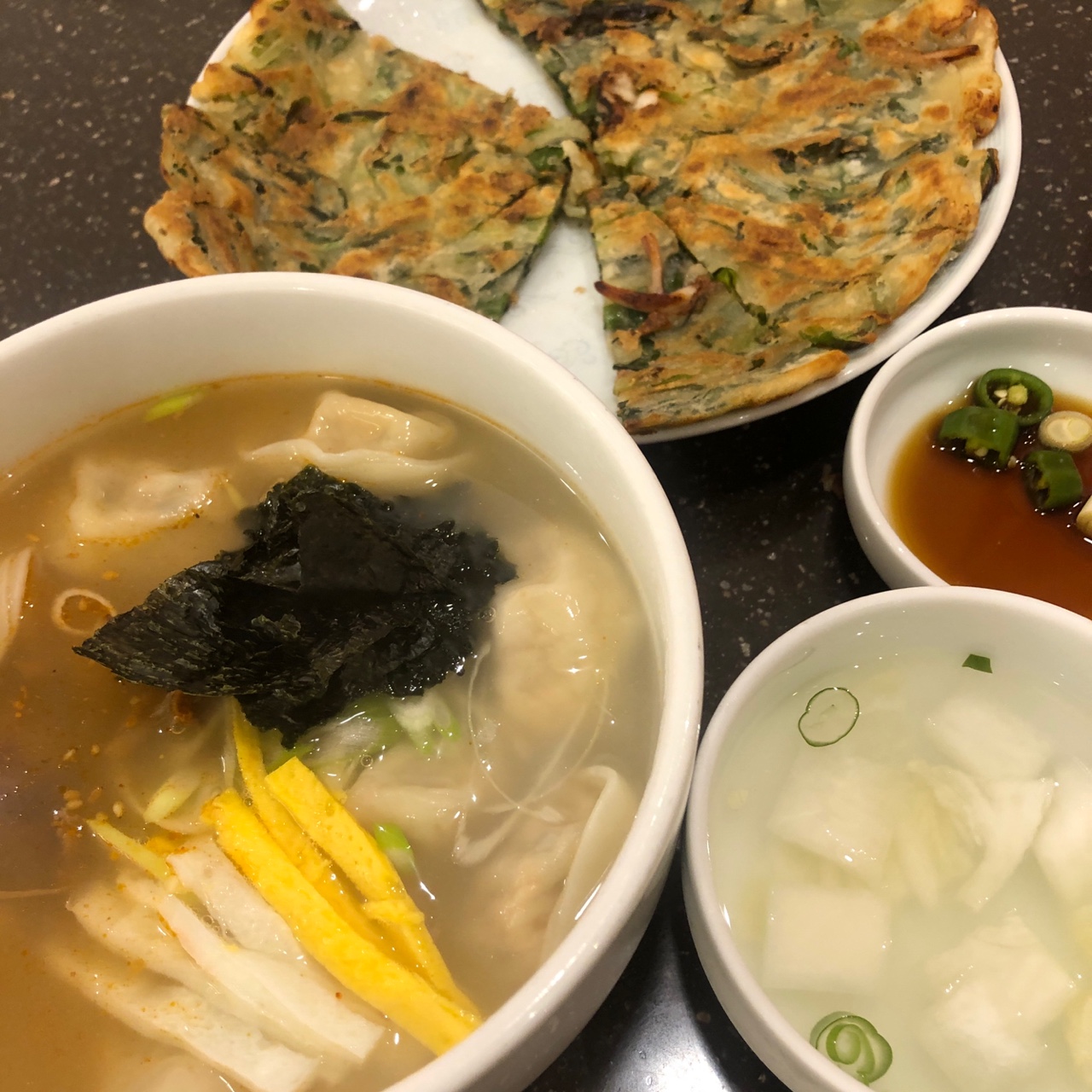 만둣국이 나오기 전에 이미 먹어버린 부추전과 함께 찍어보았습니다. ㅋㅋㅋㅋㅋㅋㅋ