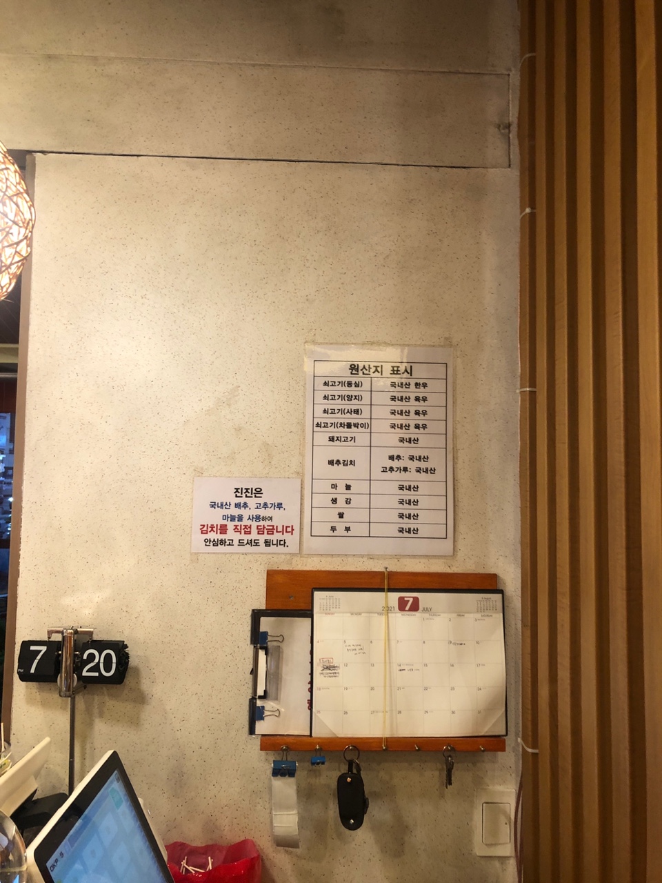 원산지는 모든 식재료가 국내산입니다. 그래서인지 메뉴판에 보이는 메뉴들의 가격대가 높은 편입니다.