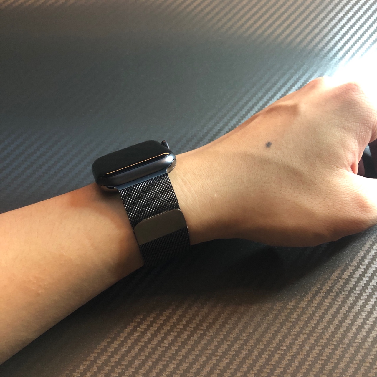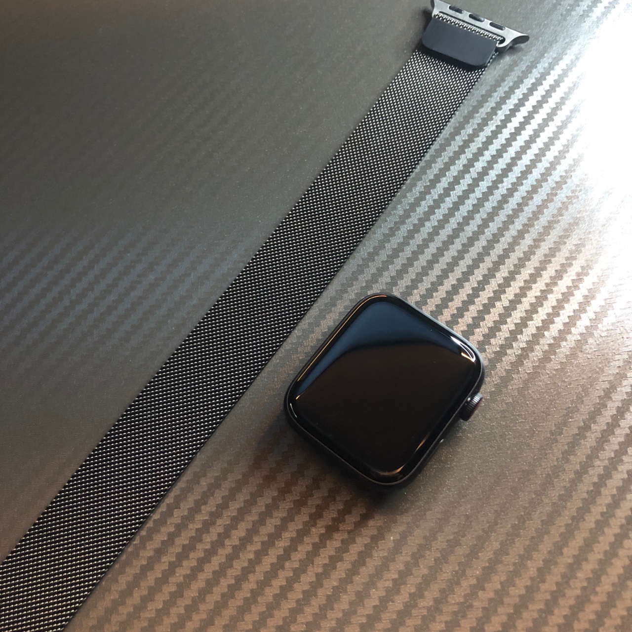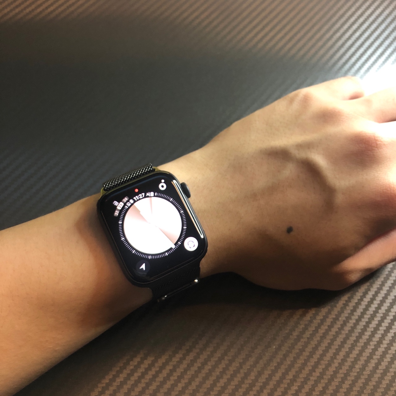 애플워치를 구매할 때 옵션으로 선택했던 44mm 그래파이트 밀레니즈 루프 제품입니다.
